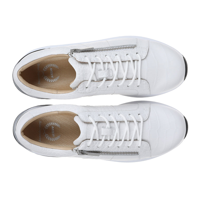 • Genuine leather embossed with a wildly reptile texture that makes it modern and unique. • Metallic zippers with stopper on side make it easy to get in and out of the sneaker. • PU insole with good shock absorption and breathability |